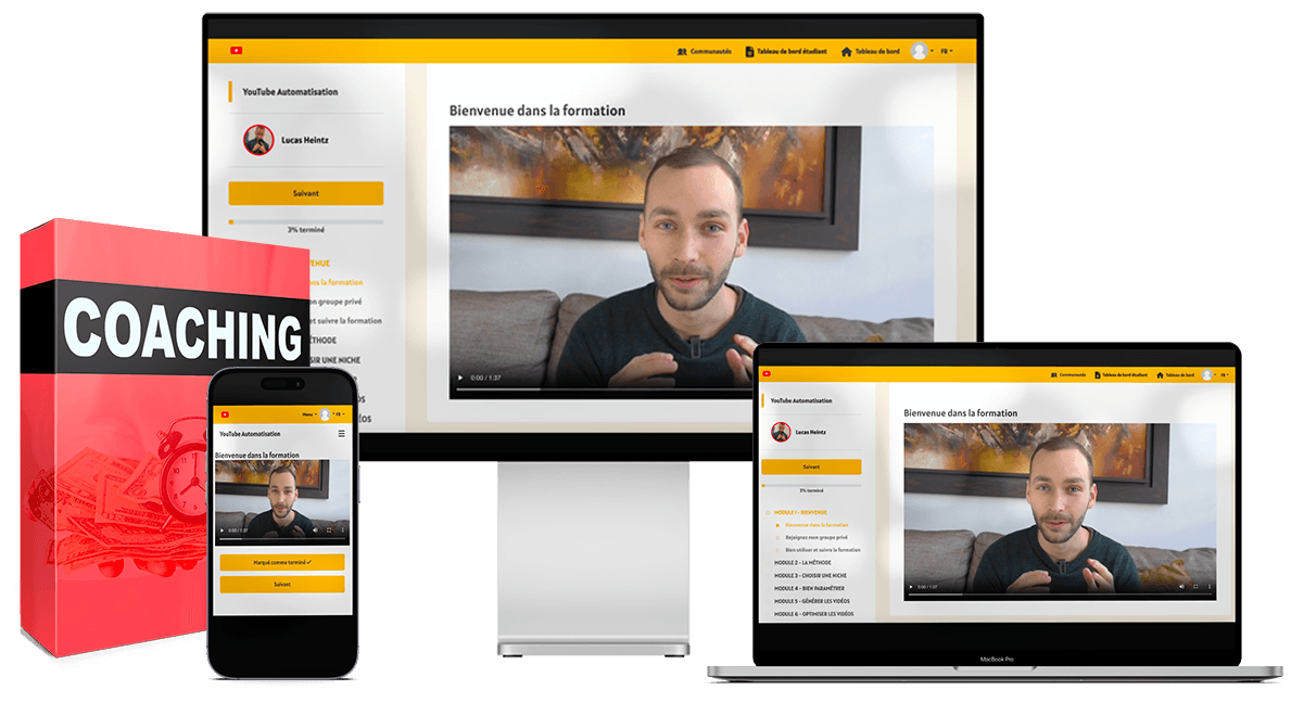YouTube Automatisation est le programme dont tu auras besoin pour améliorer tes chances de réussite sur YouTube, peu importe ton parcours et tes compétences de départ, et peu importe si tu veux te montrer ou pas.